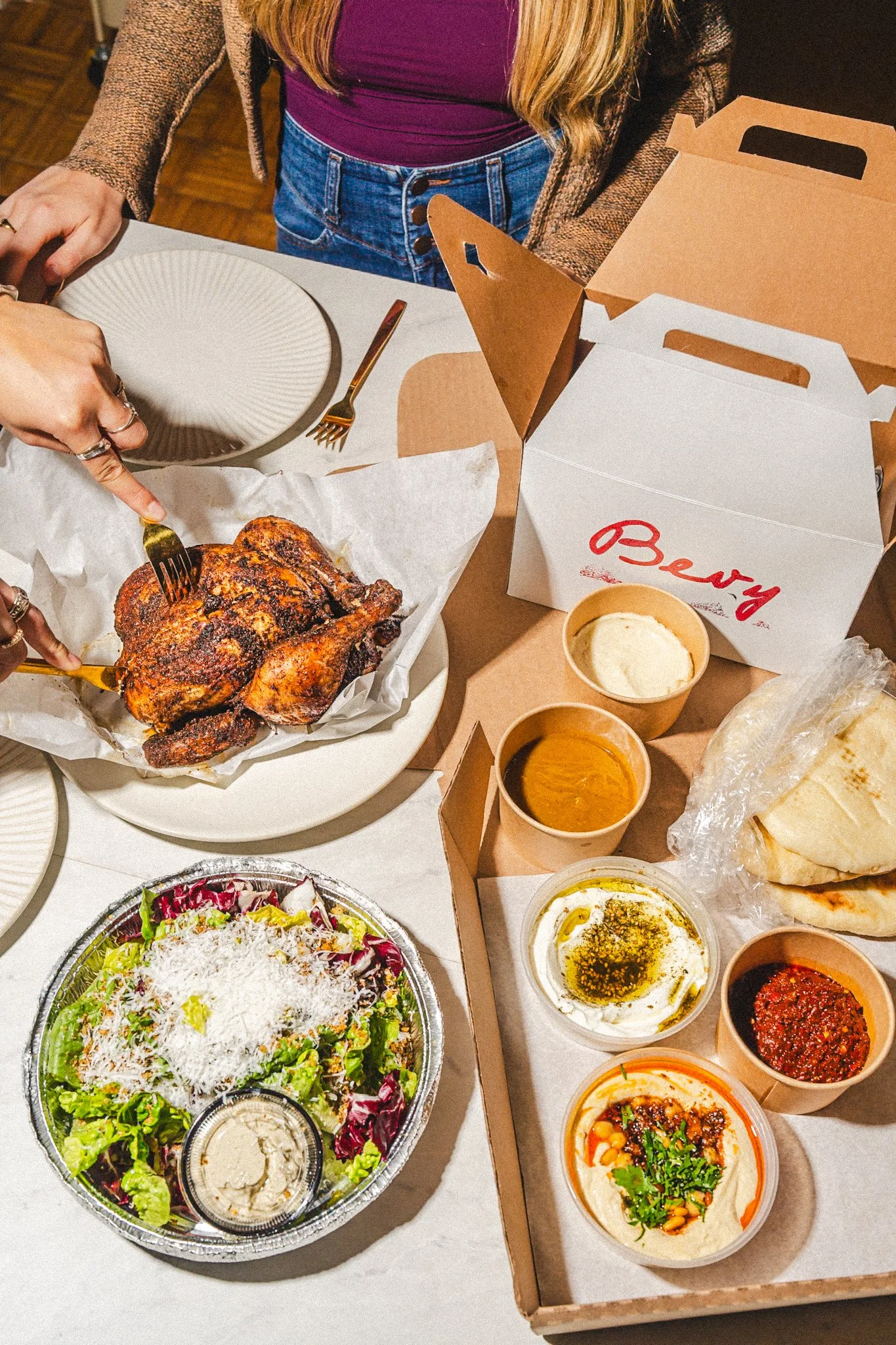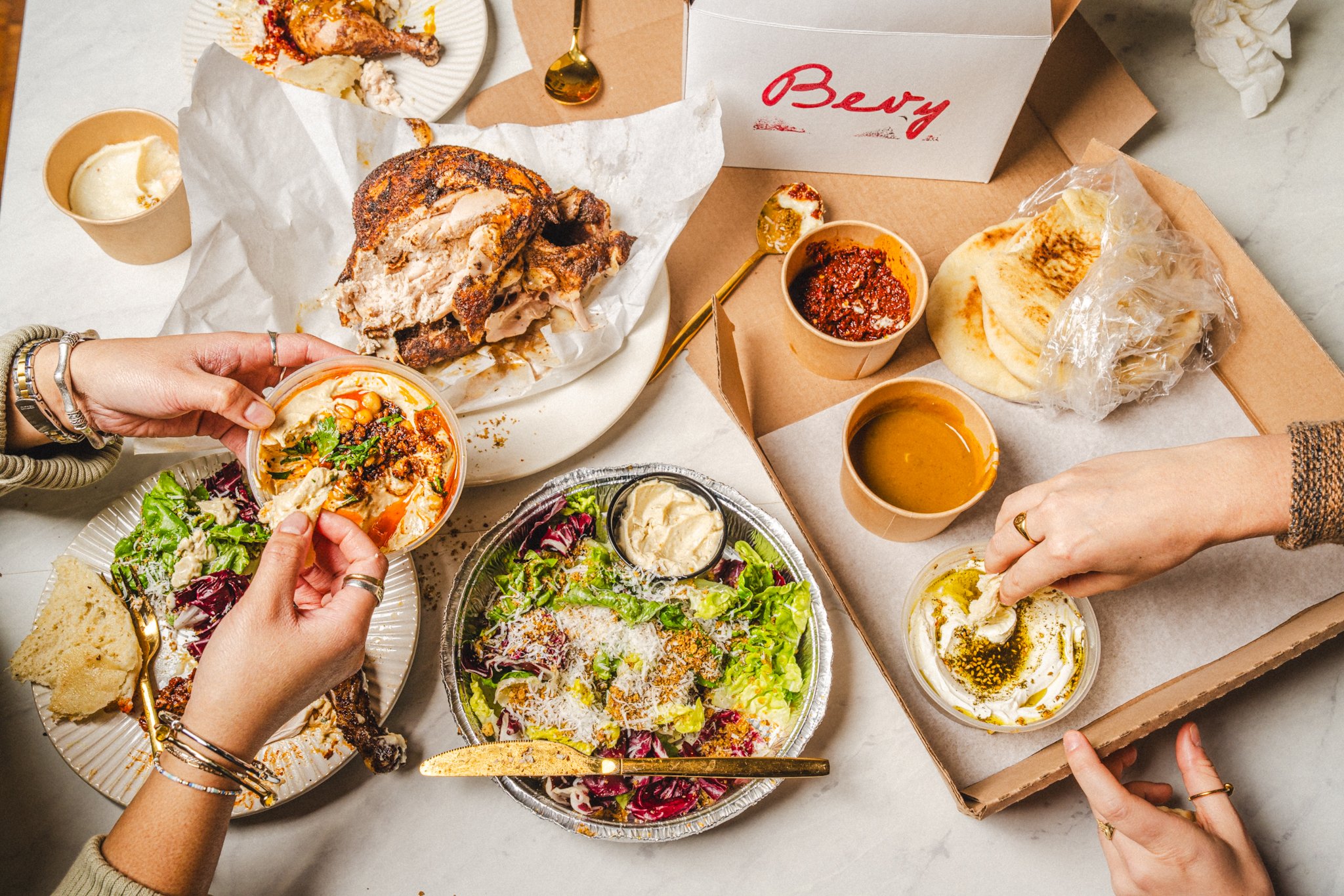 a fast, flavor-packed takeout machine built around juicy rotisserie birds, fluffy pita, crispy falafel, and DIPS you’ll WANT TO STOCK YOUR FRIDGE WITH.